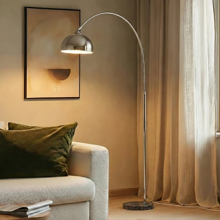 • Lampadaires arqués:\ ont - comme leur nom l'indique - une structure courbée. Il suffit de draper le pied sous le canapé et de laisser la lumière briller confortablement d'en haut sur le canapé.