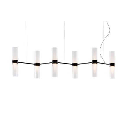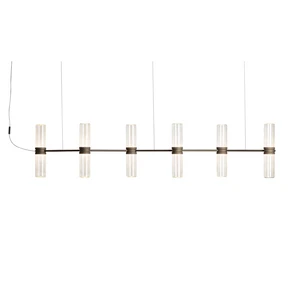 • formes allongées dans différents designs et matériaux - en or ou en bois, torsadées ou en ligne simple. Top pour éclairer les grandes tables rectangulaires.