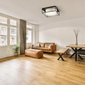 Dans les espaces de vie ouverts, une combinaison de plafonniers, de suspensions et d'éclairage ponctuel apporte de la structure : un cône de lumière douce au-dessus de la table à manger crée une proximité, tandis que des spots en arrière-plan soulignent les lignes architecturales. Le résultat est un jeu harmonieux d'ombre et de lumière qui apporte de la sérénité aux grandes surfaces.
