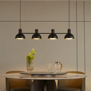 Les suspensions modernes sont également polyvalentes sur le plan technique. Il existe des variantes à 1 lampe pour un éclairage ponctuel, des modèles à plusieurs lampes pour les larges plans de travail ou des systèmes pivotants qui structurent l'espace de manière variable. Si l'on souhaite éclairer des lignes de cuisine plus longues, on optera pour des luminaires linéaires ou des groupes de luminaires. De nombreux modèles sont à intensité variable et peuvent être contrôlés par une application ou une télécommande. Les versions compactes avec un éclairage clair conviennent aux petites cuisines. Si l'on souhaite couvrir une plus grande surface, on choisira des luminaires à large diffusion ou l'on combinera plusieurs suspensions pour obtenir une solution d'éclairage uniforme.