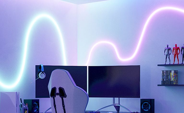 Il n'y a pas de meilleure lumière pour créer l'ambiance de jeu parfaite que l'éclairage intelligent de la maison. Elle offre toute la gamme d'ambiances de jeu modernes, des scénarios d'éclairage colorés mémorisés pour chaque jeu aux scènes d'éclairage animées. Les sources lumineuses sont commandées par l'app ou directement depuis le fauteuil de jeu par la voix. En matière de système de maison intelligente, les gamers disposent aujourd'hui d'un large éventail de marques de premier plan, chacune proposant une gamme de produits personnalisée. Les joueurs apprécient beaucoup Philips Hue, qui a en outre développé avec Hue Play une série de luminaires spécialement conçus pour les jeux. Ici, la lumière se synchronise automatiquement avec le jeu pour offrir des expériences de divertissement totalement inédites. Par ailleurs, si vous souhaitez essayer Smart Home avec votre plafonnier, votre applique murale ou votre lampe à poser habituelle, vous n'avez besoin de rien de plus qu'une ampoule intelligente.