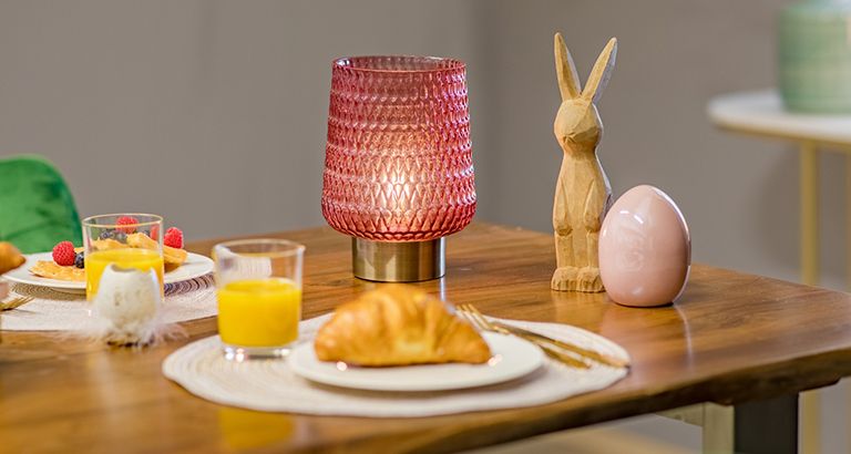 Pour le brunch de Pâques ou pour le repas de fête des jours fériés, la décoration lumineuse peut être créative. Les lampes de table rechargeables sont faites pour cela et s'intègrent avec une lumière chaude dans la décoration de table de Pâques. Disposées au centre de la table - ou avec amour place après place - elles apportent une touche de bien-être particulière et une joyeuse ambiance printanière. Conseil : les suspensions aux couleurs vives apportent une ambiance lumineuse par le haut.