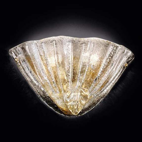 Exquise applique Alba en verre de Murano de qualité supérieure avec dorure 24 caratsL'applique Alba, entièrement fabriquée en verre de Murano, assure un éclairage d'appoint éclatant dans la pièce. La dorure 24 carats, appliquée par endroits sur le verre transparent, confère un éclat particulier à la lumière diffusée. La feuille centrale, également en verre, est un joli détail.