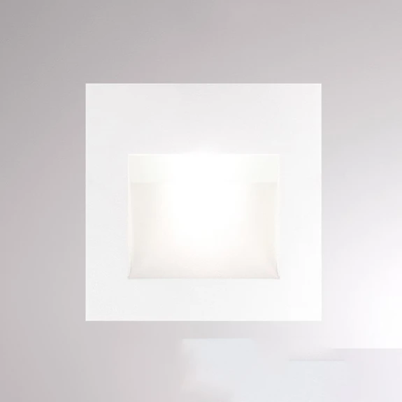 Luminaire encastrable LED carré Pan - accentuation lumineuse pour le mur L'applique encastrable LED Pan, fabriquée en aluminium à revêtement par poudre, se prête à l'éclairage d'accentuation dans les espaces intérieurs modernes - du couloir dans l'habitat privé à l'escalier menant à l'étage supérieur dans le magasin. Dans le cadre carré se trouve une ouverture rectangulaire pour la lumière, sur la partie supérieure de laquelle sont placées les LED - protection IP20 - couleur de lumière blanc chaud (3.000 K) - raccordement à 15 V DC avec 250 mA max. - découpe murale angulaire - convertisseur non compris - boîtier d'encastrement non compris (voir accessoires)