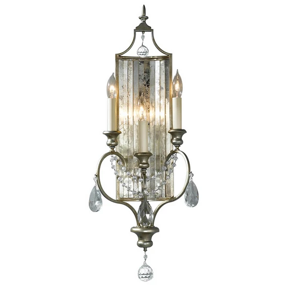 La fixation murale en métal comprend une plaque en verre miroir, dans laquelle l’éclairage se reflète, créant ainsi un effet plein d’ambiance. Les cristaux de différentes tailles sont tout aussi beaux et étincèlent à la lumière.