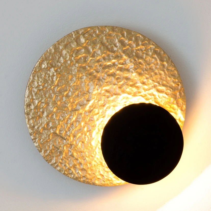 L'applique murale LED Infinity offre un jeu intéressant de brillance, de structure et de lumière. Son élément principal est un disque arrière rond en fer doré avec un motif irrégulier d'indentations. Les LED situées derrière l'élément avant, de couleur brun-noir, éclairent le cercle arrière et soulignent son éclat pulsant. L'Infinity est donc idéal pour la décoration et comme source de lumière supplémentaire dans l'espace de vie.