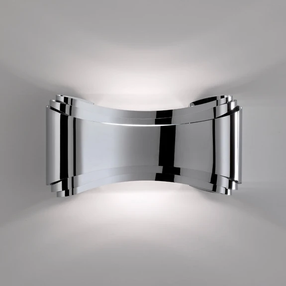 Les trois couches de la lampe murale Ionica sont découpées au laser et façonnées à la main. Les couches sont chromées et chaque couche est de taille différente, ce qui donne à la lampe une forme fluide. A l'intérieur se trouve une LED fixe dont la lumière blanche chaude est distribuée exclusivement au-dessus et en dessous de la lampe. En combinaison avec les trois feuilles d'acier qui se fondent les unes dans les autres, un intéressant jeu d'ombres est créé, donnant aux couloirs ou aux zones de vie une élégante touche moderne - que ce soit dans un cadre privé ou dans les hôtels et restaurants.