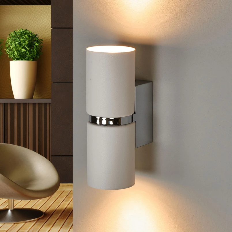 La lumière de l'applique Passa n'est pas seulement dirigée vers le haut et vers le bas à partir du corps de lampe de forme cylindrique, qui se trouve sur un support mural en acier, mais aussi à travers une fente lumineuse centrale. Cela crée une image lumineuse magique qui met non seulement le luminaire lui-même en valeur, mais qui éclaire également l'espace de vie de manière accentuée. La livraison comprend déjà deux ampoules LED GU10, ce qui permet un fonctionnement efficace et durable.