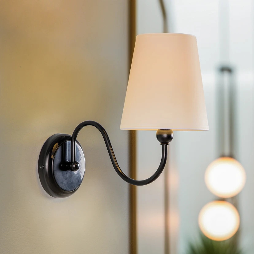 Applique Mary avec abat-jour tissu, noire/blanche