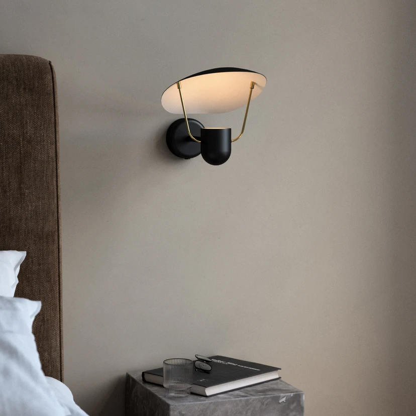 Applique murale noire Fabiola avec interrupteurL'applique murale moderne Fabiola de la designer danoise Charlotte Høncke, inspirée du design vintage italien, allie sans peine le classicisme traditionnel au modernisme contemporain. Le design est élégant et sculptural, ce qui est souligné par l'emplacement de l'abat-jour qui assure une lumière douce et indirecte. Le faisceau lumineux est dirigé par le petit spot vers la face inférieure claire de l'abat-jour métallique plat et légèrement bombé, d'où il est réfléchi et diffusé dans la pièce selon son orientation. Les détails en laiton donnent une impression de luxe et de qualité. Un interrupteur situé sur le boîtier permet d'actionner facilement Fabiola sur place.
