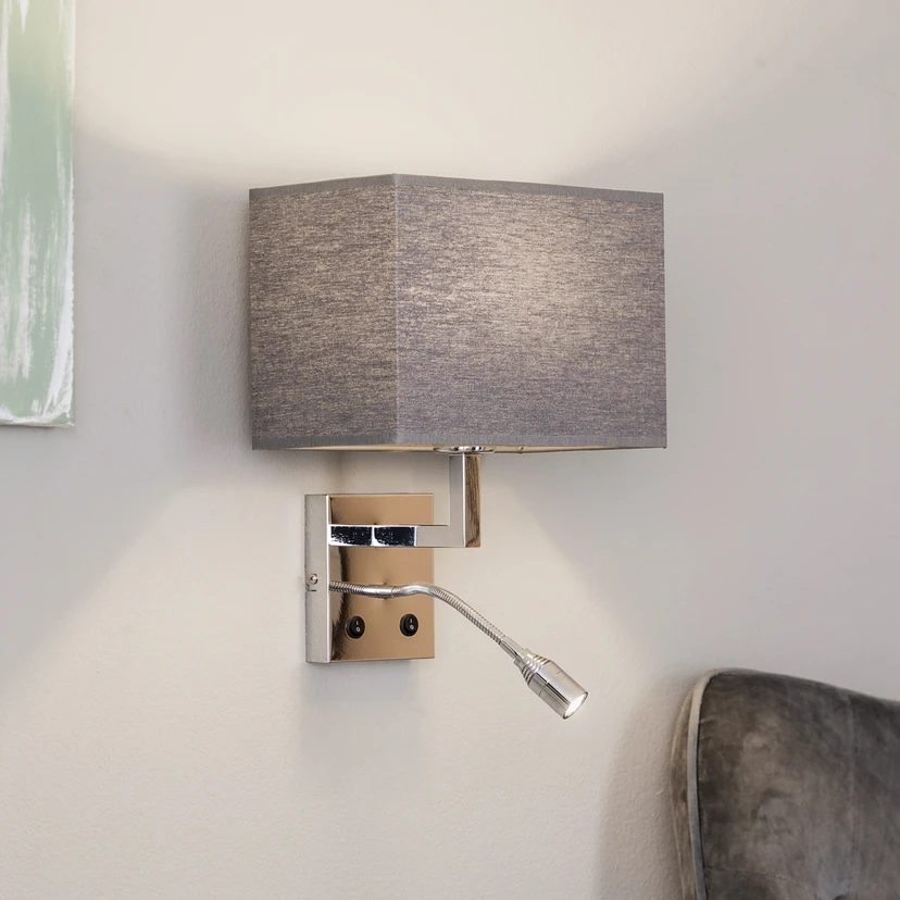 Applique murale Hotel avec bras flexible et abat-jour en tissu, gris