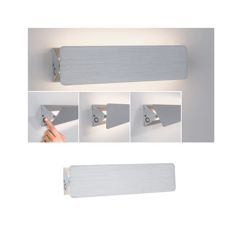 L'applique murale LED Katla dispense un éclairage de zone atmosphérique dans le salon, le couloir ou de nombreuses autres pièces. Elle peut servir à éclairer des tableaux ou à éclairer un miroir. L'écran en aluminium du luminaire peut être orienté, ce qui permet d'adapter individuellement le rayonnement lumineux et de créer un éclairage direct ou indirect avec l'applique murale, ce qui en fait également une source de lumière supplémentaire idéale pour le salon. Le luminaire est équipé de LED blanc chaud qui créent une atmosphère agréable