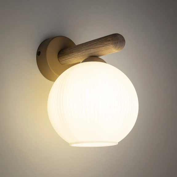 Applique murale Virlo, bois, verre opale, hauteur 20 cm, E14