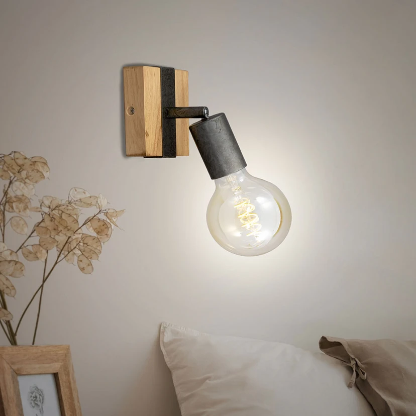 Applique murale à 1 lampe Wood Basic en bois et métal Un élément mural carré en bois et une équerre métallique fixée dessus, qui maintient une douille E27 sur une petite potence - ce sont les composants de cette applique murale à 1 lampe, qui met l'accent sur l'ampoule à utiliser. Selon la forme, la couleur et la lumière de l'ampoule choisie, l'effet optique et lumineux de l'applique murale peut être modifié. L'ampoule n'est pas fournie.