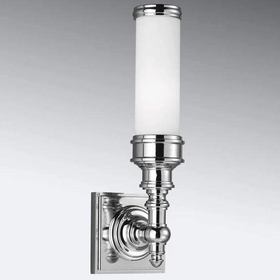 Impossible de ne pas remarquer l’emprunt à l’élégant style Tudor dans l’applique à une lampe Payne Ornate : la fixation murale chromée brillante ainsi que le support sont ornés de décorations, un élément chromé poli se situe à l’extrémité de la vasque blanche. L’abat-jour en verre opale dispense sa lumière agréable et claire de tous les côtés pour un éclairage équilibré de l’environnement. Payne Ornate convient parfaitement pour l’éclairage de miroirs, en solo et en duo.