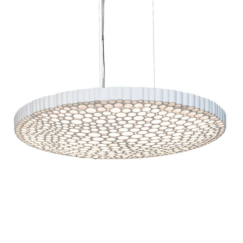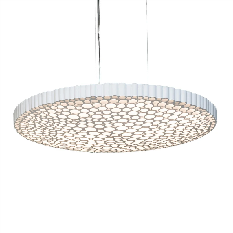 Suspension design Calipso - un point fort inhabituel pour l'habitat moderne Le designer Neil Poulton, qui travaille régulièrement pour l'entreprise italienne de luminaires Artemide, est responsable de la conception de la suspension LED Calipso. Originaire d'Écosse, il vit et travaille désormais à Paris et est surtout connu pour ses créations dans le domaine de la technologie et du design de luminaires. L'abat-jour de Calipso présente une structure en nid d'abeille inhabituelle, qui trouve son origine dans une approche encore plus inhabituelle du designer. Elle est basée sur une photo de la Lune qui a été retouchée à l'aide d'un PC. C'est ainsi qu'est né un motif en nid d'abeille qui, de par sa structure irrégulière, a un effet très organique et assure une ambiance lumineuse très homogène. Neil Poulton, dont le travail a déjà été récompensé par de nombreux prix internationaux, a conçu pour Artemide, entre autres, le luminaire Veio, qui a reçu la "Menzione d'Onore Premio Compasso d'Oro 2011". - made in Italy