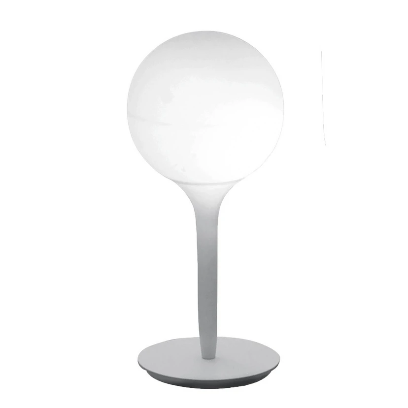 Castore est une lampe de table de la série de lampes éponyme, qui peut être combinée de nombreuses façons grâce à son design simple et intemporel et qui attire en même temps le regard par la combinaison caractéristique d'un cadre mince et d'un abat-jour sphérique qui brille tout autour. Ce dernier est constitué de verre opale soufflé à la bouche et produit une émission de lumière diffuse très agréable dans toutes les directions. Il est soutenu par une tige en plastique. La base en alliage métallique Zamak donne à la lampe un support solide.