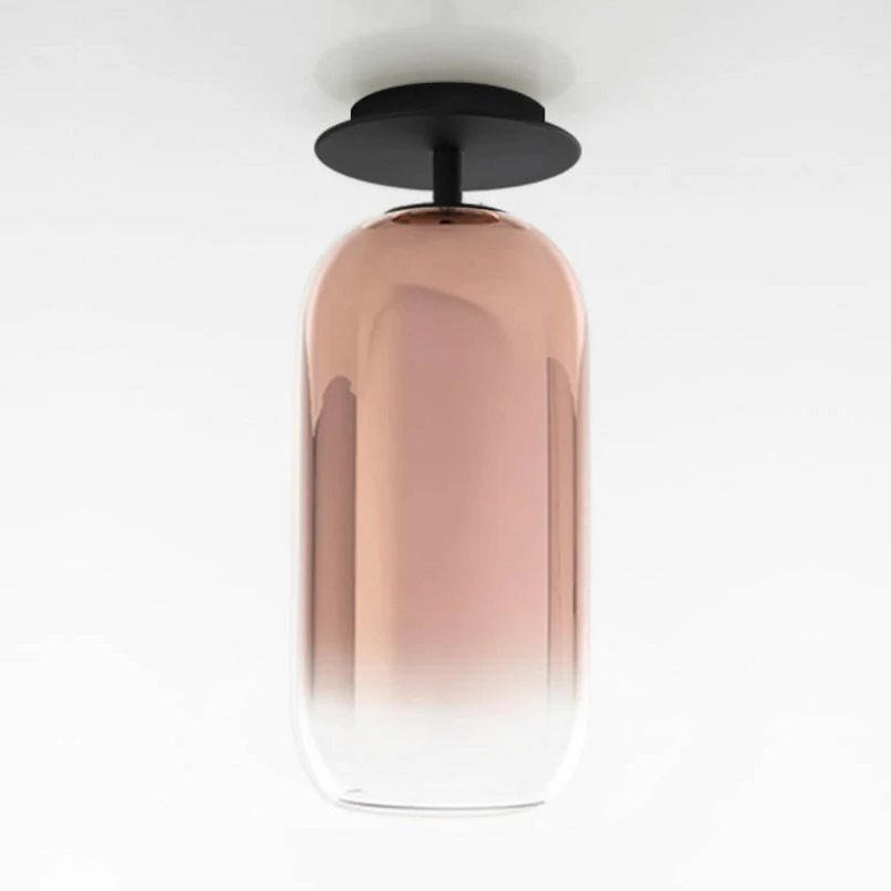 Plafonnier Gople avec design unique du verre- Design : BIG Le plafonnier design Gople attire vraiment le regard : Son abat-jour en verre a été fabriqué à la main selon l'ancienne tradition artisanale vénitienne. Du verre coloré et du cristal ont été soufflés ensemble, ce qui a donné au verre son aspect incomparablement attrayant. Le dégradé de couleurs confère un flair particulier à la lumière diffusée tout autour de la lampe utilisée. Même éteinte, la lampe conçue par le Bjarke Ingels Group attire tous les regards. Gople fournit un éclairage de base et de zone complet pour les salons et les chambres à coucher, ainsi que pour les couloirs et les entrées. La société de fabrication Artemide s'est engagée à respecter le principe "The Human Light". Elle produit des lampes de designer de haute qualité qui répondent au besoin profondément humain d'un environnement harmonieusement aménagé par une lumière appropriée. Artemide dispose de cinq sites de production en Italie, en Hongrie, en France et au Canada, ainsi que de deux verreries et d'une structure de recherche propres. Le groupe distribue ses produits dans 98 pays.