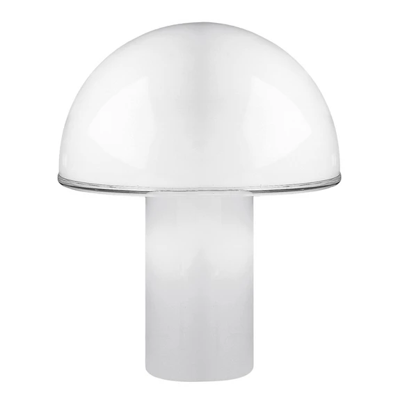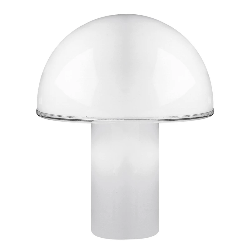 Lampe à poser en verre translucide Onfale La lampe à poser Onfale est très particulière. Elle offre non seulement un éclairage d'appoint adapté à chaque pièce de vie et à de nombreux styles d'aménagement modernes, mais sert également d'accessoire de décoration incomparable. Le pied et l'abat-jour ont le même aspect : tous deux sont en verre opalin soufflé à la bouche, le bord de l'abat-jour est en cristal transparent. Onfale est le fruit de l'œuvre du designer italien Luciano Vistosi, qui vit à Venise et travaille sur l'île de Murano. Vistosi est issu d'une famille vénitienne qui possédait des verreries et fabriquait des produits industriels. Après la mort de son père en 1952, il a fondé la Vetreria Vistosi avec son oncle et son frère. Ils voulaient fabriquer des luminaires au design plus moderne. Depuis la fin des années 1960, Vistosi s'est concentré sur le soufflage du verre et est devenu une personnalité importante de la scène artistique italienne. Il a conçu la lampe à poser Onfale pour la célèbre entreprise italienne de luminaires Artemide, présente dans plus de 98 pays et connue pour ses produits haut de gamme.