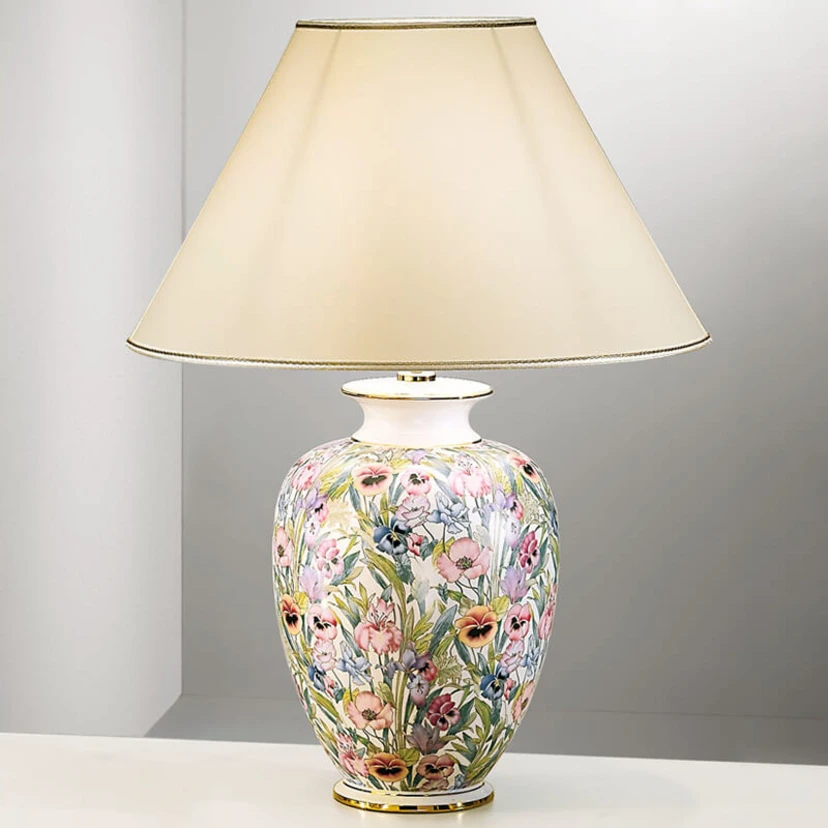 Lampe de table GIARDINO PANSE avec motif de fleur travaillé en détail