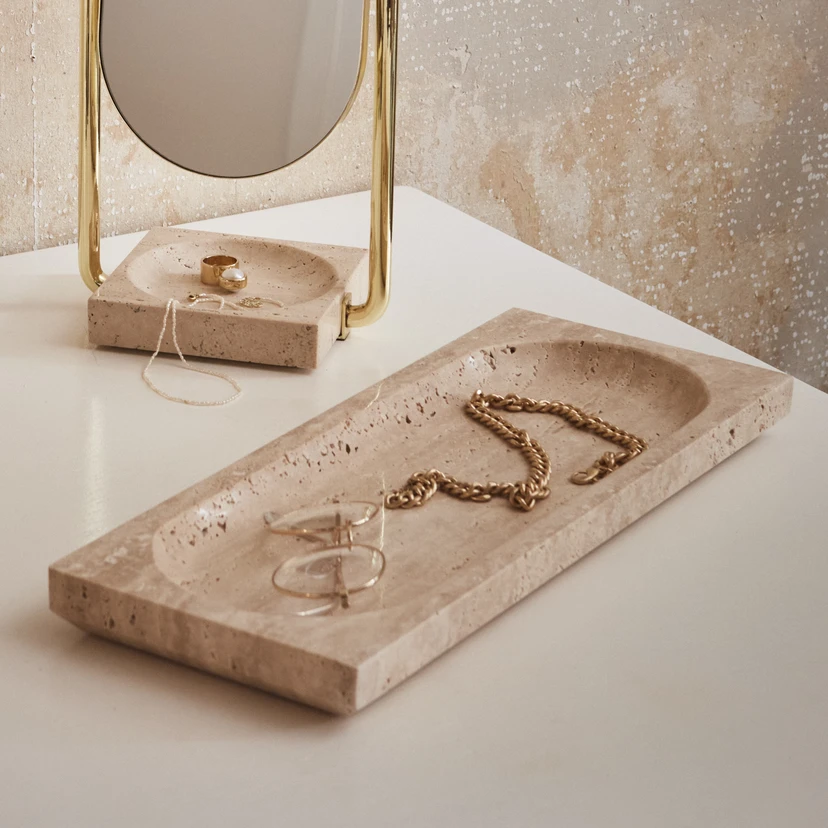 AYTM Coupe Regina, longueur 40 cm, largeur 16 cm, travertin