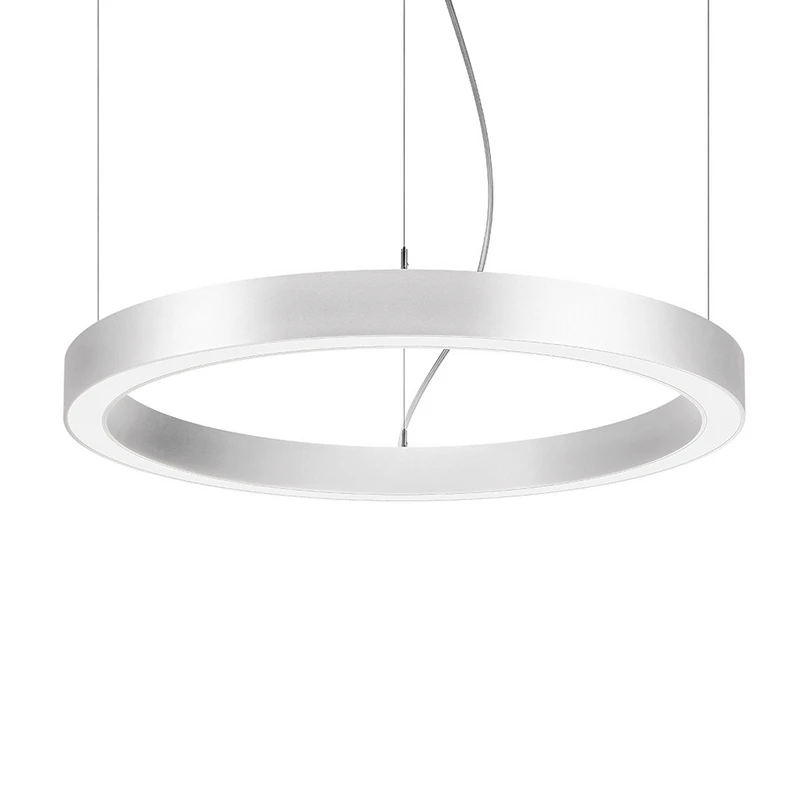 Le boîtier de haute qualité de la Biro Circle est conçu en forme d'anneau et se compose d'aluminium et d'acier. Une surface légèrement structurée complète l'aspect gracieux de l'ensemble. Ainsi, elle séduit aussi bien de près qu'au moment où on la voit pour la première fois en entrant dans la pièce. Son design moderne est particulièrement mis en valeur lorsqu'elle est placée de manière stratégique dans de grandes pièces.