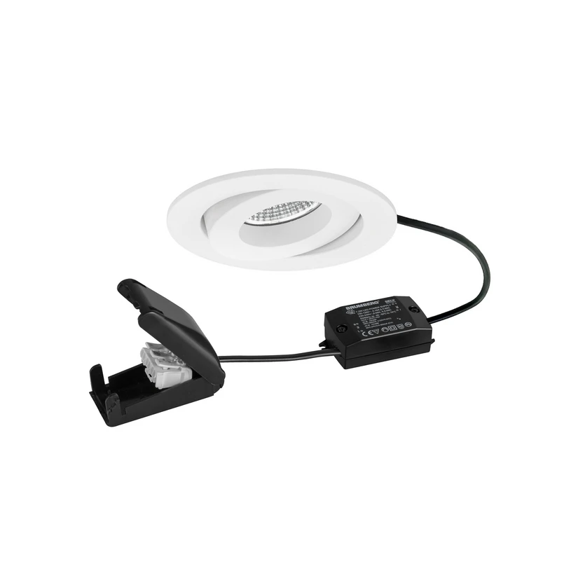 Spot encastré LED rond BB33 avec driver LED et boîtier de raccordement Le spot encastré LED BB33 peut être encastré sans outil dans les plafonds au moyen de ressorts d'encastrement. Il est équipé d'un réflecteur argenté avec une répartition de l'intensité lumineuse à symétrie de révolution, profonde et large, ainsi que d'un cache transparent en polycarbonate, de sorte que la lumière est diffusée avec puissance et répartition optimale - ballast électronique inclus, commutable - boîte de connexion à 3 pôles incluse pour le câblage traversant - température ambiante admissible (ta) : -20 °C - +25 °C - épaisseur max. du plafond 1,5 cm