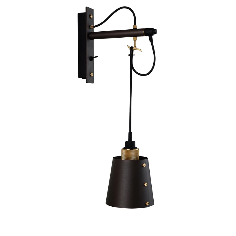 Applique Hooked Wall small avec bras, abat-jour métallique et long câble