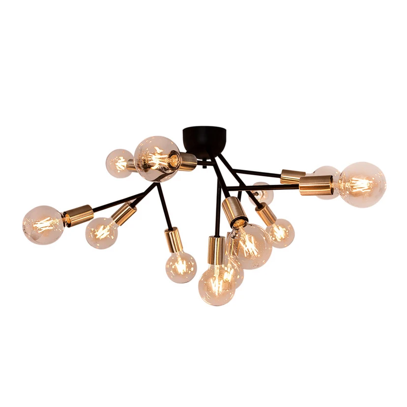 Plafonnier Hero à 12 lampes à la teinte élégante en noir laiton pour un bel effet