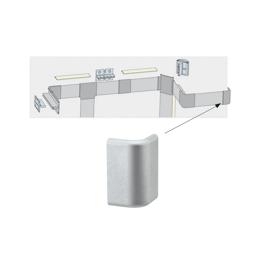 Ce capuchon d’extrémité en matière synthétique aspect aluminium dissimule les rails et les assemblages du bandeau à LED Duo Profil. Vendu par 2.