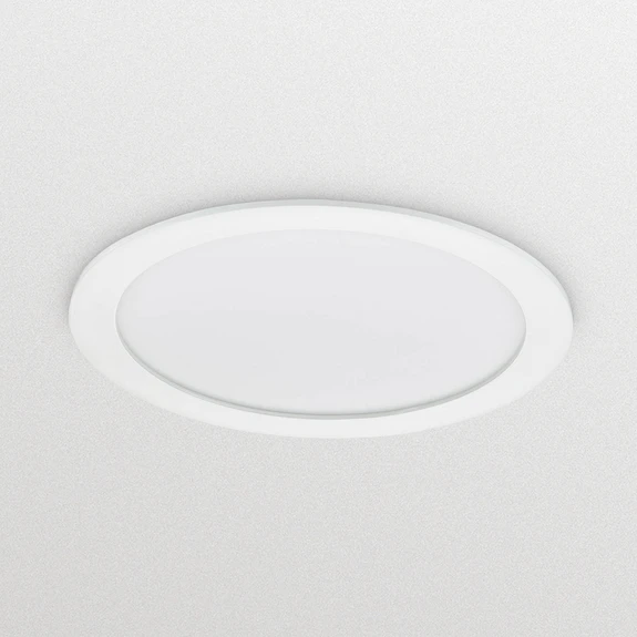Plafonnier encastré LED plat DN145B, IP44, on/off Le plafonnier encastré DN145B de la série Philips CoreLine est conçu pour un éclairage général homogène de grande surface et peut être utilisé non seulement dans les couloirs, mais aussi dans les salles de bains et les zones de lavage grâce à son revêtement étanche aux projections d'eau côté pièce. Le cadre en aluminium présente une très faible hauteur et comprend un diffuseur en plastique opale qui émet la lumière du module LED dans un large angle - ballast inclus (externe, PSU, on/off) - température ambiante en fonctionnement : 0 °C à + 35 °C - protection : IP44 côté pièce, IP20 côté arrière - résistance aux chocs : IK02 - bloc de connexion à 2 pôles