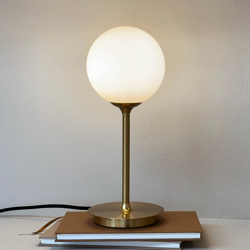Dyberg Larsen Lampe de table Sia, opale/laiton, hauteur 12 cm