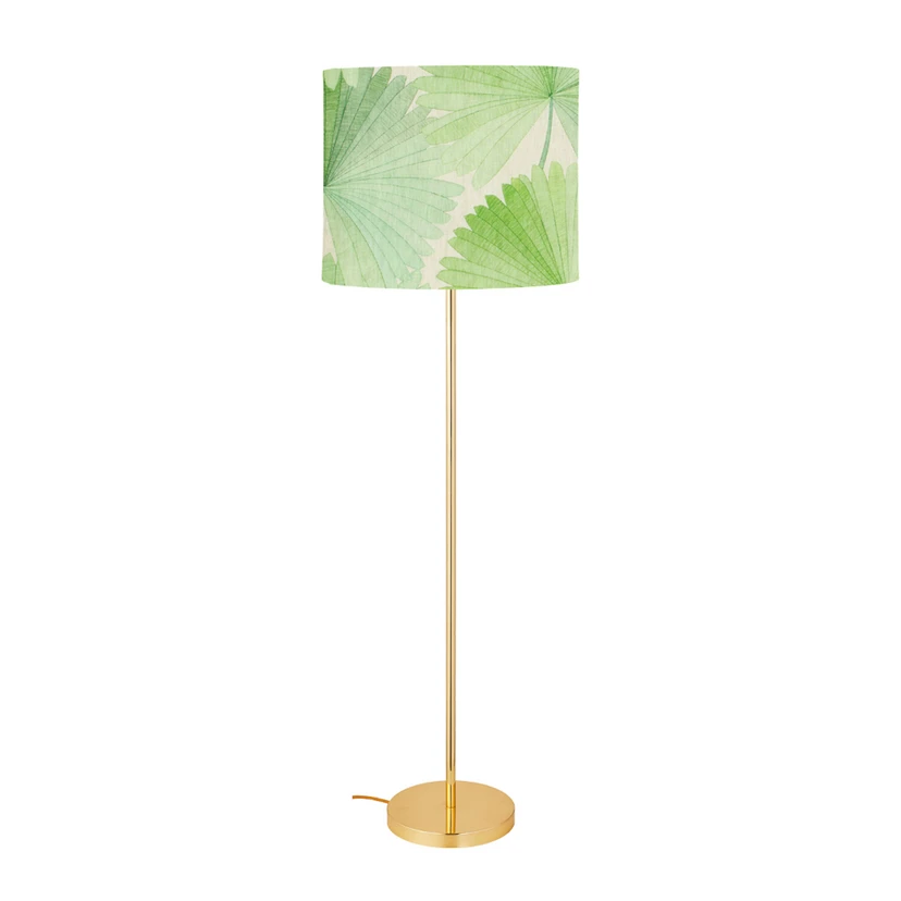 Lampadaire Barre XL en or avec abat-jour en lin vert palmier Tango