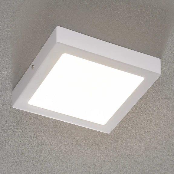 Contrôle par application - Plafonnier LED carré Fueva ConnectSi le plafonnier LED Fueva Connect est visuellement simple, il est véritablement polyvalent en matière d'éclairage.L'application gratuite, disponible pour Android et IOS, permet de contrôler la lumière du plafonnier LED au moyen d'une tablette ou d'un smartphone, et ce dans les couleurs de lumière et les modes les plus divers, par exemple :- éclairage blanc dans la plage du blanc chaud à la lumière du jour (2.700 - 6.pour une commande alternative du luminaire sans smartphone ou tablette, une télécommande est disponible en tant qu'accessoire, avec laquelle les réglages d'éclairage susmentionnés peuvent également être réalisés.Le plafonnier LED carré Fueva Connect en métal moulé avec diffuseur en plastique blanc s'intègre dans presque tous les intérieurs grâce à son design sobre.