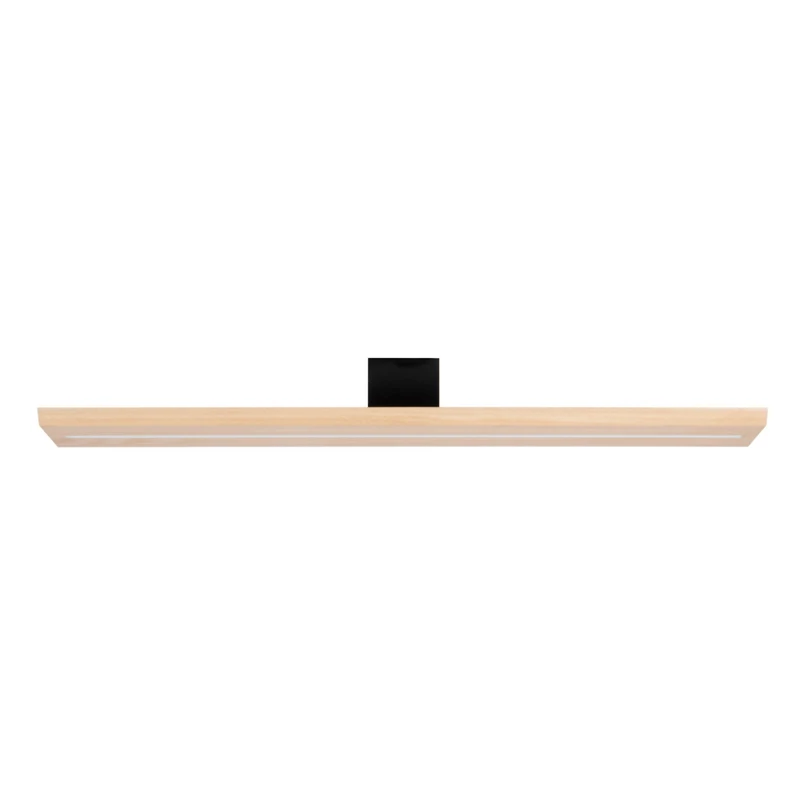 Plafonnier LED moderne Tribe en bois de hêtre clair Le plafonnier Tribe permet non seulement d'obtenir un éclairage direct de table et de zone dans les pièces d'habitation modernes, mais aussi de créer un accent chaleureux et naturel. Le corps rectangulaire plat, fabriqué en bois de hêtre clair huilé, en est la preuve. Il abrite sur sa face inférieure une bande de LED à rayonnement blanc chaud. Un baldaquin parallélépipédique en métal laqué noir s'y ajoute - luminaire de la marque Envostar - fabriqué en Europe - emballage durable en matériaux recyclables