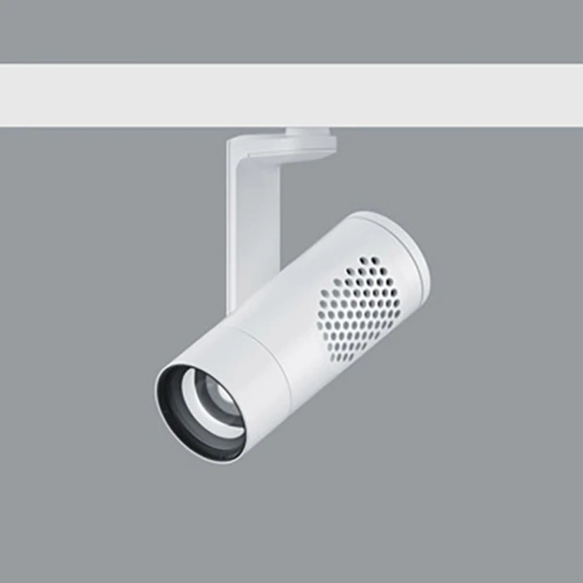 Le projecteur à LED Eclipse S permet d'équiper les rails conducteurs haute tension ERCO, par exemple pour présenter de manière ciblée des étalages de marchandises dans les espaces de vente ou des sculptures et des tableaux dans les galeries. La tête en fonte d'aluminium de forme cylindrique dispose de LED haute puissance dont la lumière est émise par une optique collimatrice en polymère optique et une lentille darklight. Le bras est relié de manière mobile à la tête et à l'adaptateur de rail, ce qui permet un pivotement de 270° et une rotation de 360°. Une possibilité de commande intelligente avec l'application Casambi pour smartphone/tablette complète Eclipse S.