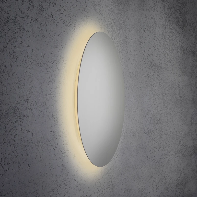 L'applique murale LED Blade du fabricant Escale est un diffuseur de lumière agréable au design moderne. L'optique se limite à un disque circulaire plat en aluminium, à la finition argentée anodisée mate. Celui-ci est placé à une faible distance du mur et protège entièrement les LED situées derrière. Leur lumière blanc chaud est réfléchie par l'arrière du disque et émise sur le mur. Le résultat est un doux corona de lumière qui éclaire la zone autour de l'applique Blade.