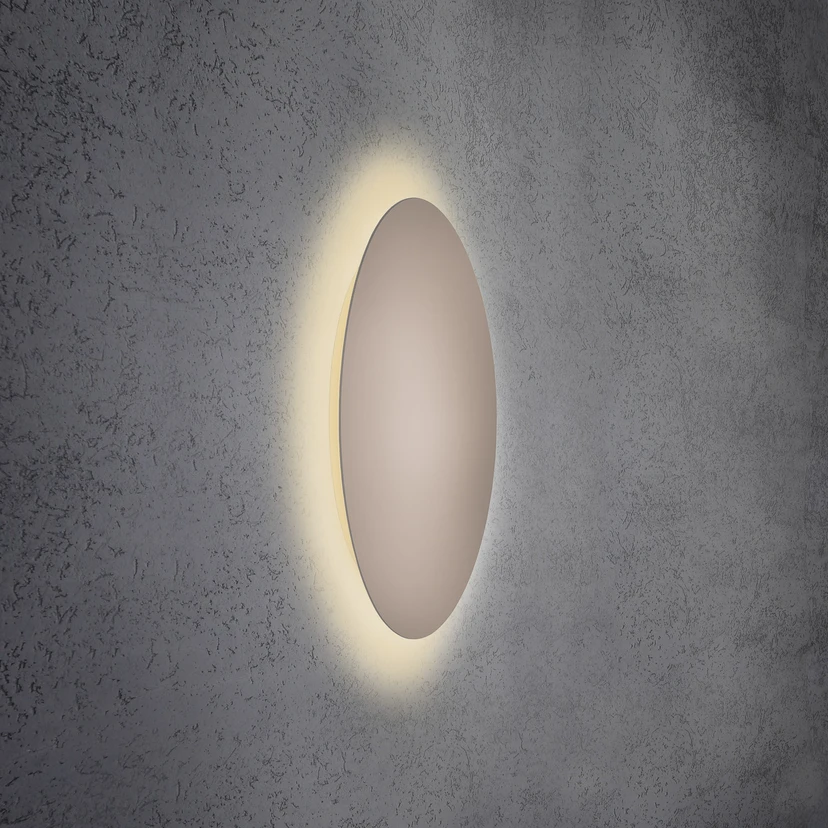 Les LED à rayonnement blanc chaud se trouvent à l'arrière, de sorte qu'elles créent un halo de lumière diffus sur le mur et permettent d'obtenir un éclairage indirect de la pièce. L'aspect du luminaire lui-même se limite à un disque plat et rond.