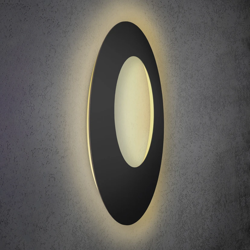 L'applique murale LED Blade est équipée d'un module LED courbé en cercle qui est installé derrière une plaque décorative ronde en aluminium. L'ouverture circulaire décentrée de la plaque décorative confère au design un caractère ludique qui allège la forme ronde précise et permet en même temps une vue directe sur le module LED. Les diodes électroluminescentes intégrées diffusent une lumière blanche chaude et agréable qui crée une atmosphère confortable dans chaque pièce. La lumière indirecte est projetée sur le mur et donne l'impression que le luminaire flotte devant le mur.