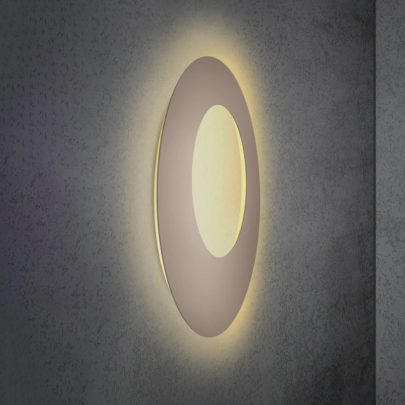L'applique murale LED Blade est équipée d'un module LED courbé en cercle, installé derrière une plaque décorative ronde en aluminium. L'ouverture circulaire décentrée de la plaque décorative confère au design un caractère ludique qui allège la forme ronde précise et permet en même temps une vue directe sur le module LED. Les diodes électroluminescentes intégrées diffusent une lumière blanche chaude et agréable qui crée une atmosphère confortable dans chaque pièce. La lumière indirecte est projetée sur le mur et donne l'impression que le luminaire flotte devant le mur.