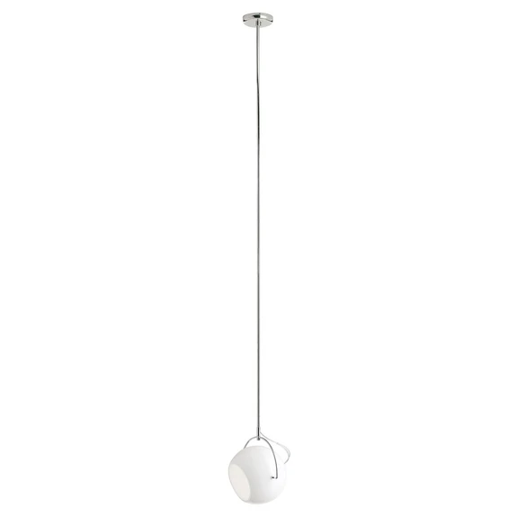 Le support mince en métal brillant offre un support rotatif et pivotant pour l'abat-jour, de sorte que l'émission de lumière peut être alignée librement selon les besoins. L'abat-jour sphérique à ouverture ronde est fait de verre soufflé blanc et capte également l'éclat du support. Une lampe G9 peut être utilisée comme source de lumière.