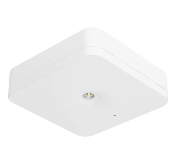 Cette lampe de sécurité blanche carrée pour l'éclairage des issues de secours avec optiques destinées à l'éclairage des issues de secours ou des surfaces, pour montage apparent au plafond, est fabriquée en plastique. La lampe de secours autonome est équipée d'une ampoule LED. La durée de fonctionnement nominale peut être sélectionnée à l'aide d'un interrupteur (1 h/2 h/3 h/8 h). Le flux lumineux varie en fonction de la durée de fonctionnement nominale sélectionnée (261 lm @1 h, 233 lm @2 h, 192 lm @3 h, 70 lm @8 h). Le luminaire de secours est équipé d'un module de surveillance pour les tests automatiques de fonctionnement et de durée de fonctionnement afin de garantir un fonctionnement conforme aux normes EN 50172 et CEI 62034. L'affichage d'état (prêt à fonctionner, en charge, en mode batterie, batterie défectueuse, LED/électronique défectueuse) s'effectue via une LED d'état bicolore. L'accumulateur intégré comprend un contrôle électronique de la charge et une protection contre la décharge profonde.