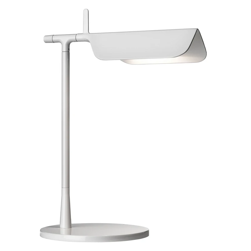 La lumière sur le bureau est toujours nécessaire, que ce soit au travail ou sur le bureau à la maison. Pourquoi se contenter de luminaires fonctionnels et renoncer complètement au design et à l'esthétique ? Avec la lampe de bureau LED Tab LED T de FLOS, ce n'est pas nécessaire, car elle offre les deux : une lumière pratique pour travailler et une exigence esthétique. L'abat-jour en forme de toit de Tab LED T peut être orienté et réglé comme l'exigent les besoins individuels