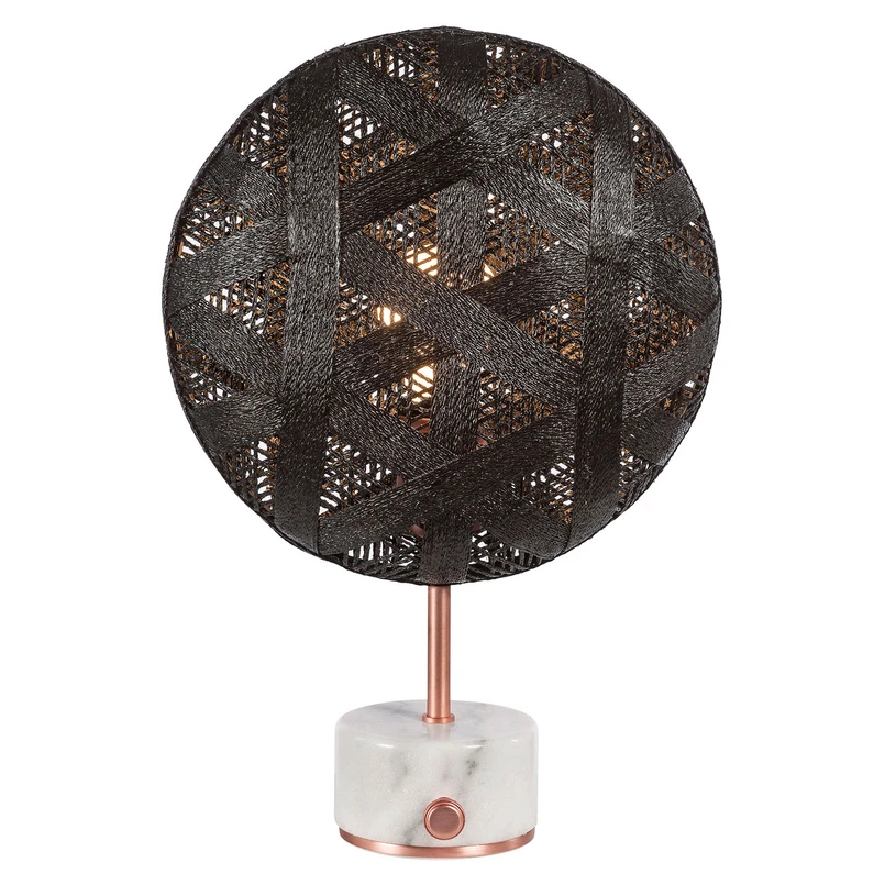 L'abat-jour circulaire de la lampe de table Chanpen ressemble à une pleine lune, ce qui est à la hauteur de son nom, qui signifie pleine lune. La lampe de table fournit une lumière agréable et non éblouissante, principalement grâce à son abat-jour recouvert de fibres de chanvre. Le motif formé par les fibres de chanvre est constitué de formes hexagonales. Au pied de la lampe se trouve un variateur rotatif, qui permet de régler confortablement la luminosité.