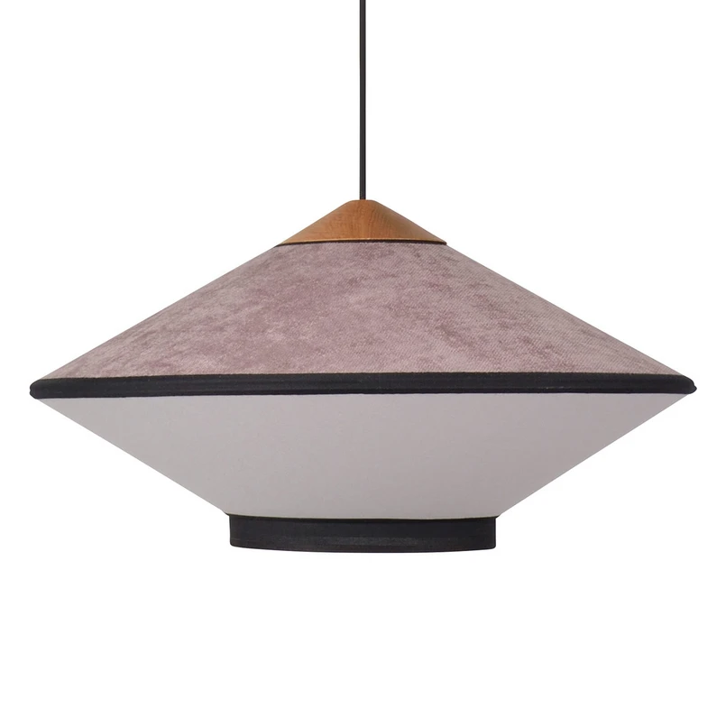 La suspension design Cymbal recouverte de velours crée un sentiment de bien-être La designer Jette Scheib cherche l'inspiration dans son environnement, dans les gens et dans leur comportement entre eux et avec les objets. Elle conçoit des luminaires qui ne sont pas seulement fonctionnels, mais qui créent avant tout une atmosphère de bien-être et qui ont de la personnalité. La suspension ronde Cymbal est une combinaison harmonieuse de textile et de bois qui remplit chaque pièce d'une lumière douce. L'abat-jour rond est caractéristique : il est divisé en deux parties et se termine en pointe au milieu, de sorte qu'il se divise en un côté supérieur et un côté inférieur. Cette division permet de séparer clairement les textiles, de sorte que la partie supérieure est recouverte de Samt et la partie inférieure de textile. Un petit abat-jour en bois forme la fin de l'abat-jour, d'où part le câble vers la fixation au plafond.