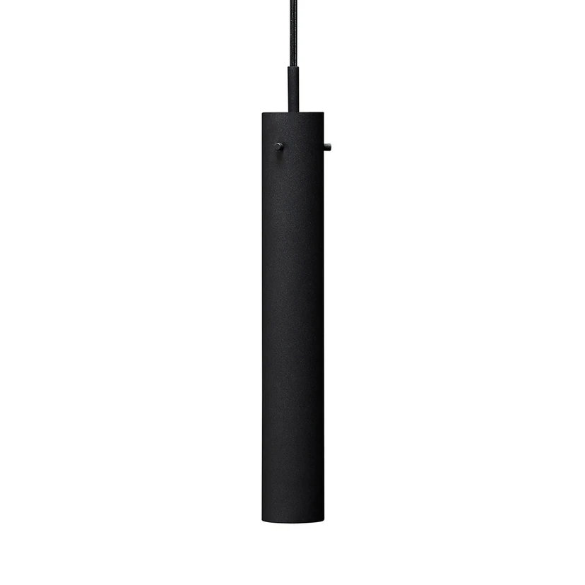 Lampe suspendue design FM2014 avec abat-jour tubulaire étroit - hauteur 36 cmLa lampe suspendue FM2014 se présente de manière simple, son optique est marquée par une beauté intemporelle. FM2014 présente un abat-jour étroit et tubulaire, équipé d'une douille GU10, qui doit être équipée de préférence d'une ampoule LED efficace en énergie avec le culot correspondant. FM2014 s'intègre parfaitement dans les espaces d'aménagement classiques ou modernes et peut servir de source de lumière générale ou de diffuseur de lumière pour un éclairage de table ciblé. L'abat-jour est fabriqué en métal et le câble a été recouvert de tissu.Knud Friis (1926-2010) et Elmar Moltke Nielsen (1924-1997) étaient deux architectes danois qui, depuis 1955, dirigeaient ensemble un bureau d'architecture à Aarhus ainsi que deux succursales à Copenhague et Aalborg. La société Friis