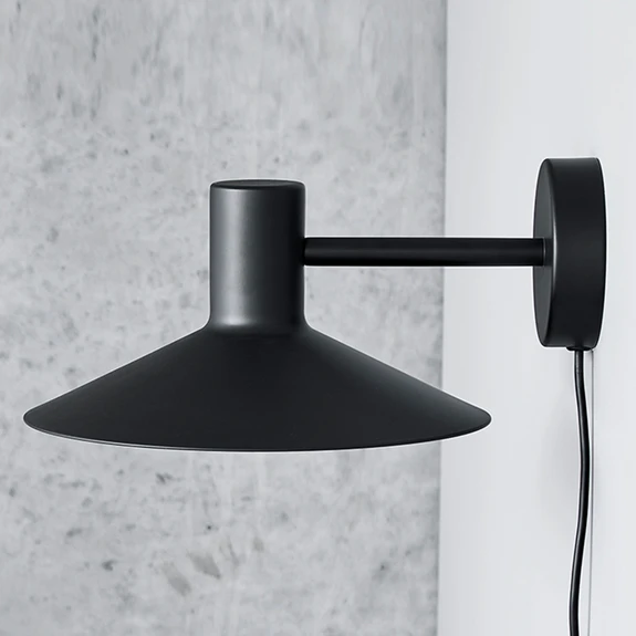 L'applique Minneapolis fait partie d'une série de suspensions, de lampes de table, de lampadaires et d'appliques créés par le cabinet de design danois Friis & Moltke, fondé en 1955. Conçu à l'origine en 1984 pour l'hôtel et le centre de conférences Scanticon à Minneapolis, devenu par la suite le Crown Plaza, il évoque visuellement des souvenirs de design japonais avec ses lignes épurées. La lampe murale se compose d'un support mural rond avec un bras qui s'étend loin dans la pièce, auquel est fixé un grand abat-jour en métal. Grâce à la largeur de l'abat-jour, une grande diffusion de la lumière est créée dans l'environnement. Minneapolis est idéal pour un éclairage d'appoint efficace dans les espaces de vie et pour l'aménagement des chambres d'hôtel.