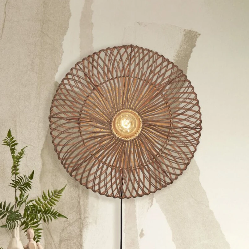Applique murale ronde Zanzibar avec abat-jour en rotin et prise de courantL'applique murale Zanzibar se compose d'un abat-jour rond en rotin, conçu de manière ouverte. Il rappelle une grande fleur et enrichit l'espace de vie avec sa belle ambiance naturelle. Grâce à la fiche, la lampe murale peut être mise en service en un tour de main. L'interrupteur marche/arrêt se trouve directement sur le câble. Que ce soit comme éclairage indirect dans le salon ou comme source de lumière d'ambiance dans le couloir, Zanzibar crée partout une atmosphère accueillante et détendue. Pour l'éclairage, une source de lumière décorative est idéale.A propos de Good & Mojo:- marque durable et sociale- une grande partie de l'éclairage est fabriquée à la main par des artisans dans de petites communautés au Vietnam- matériaux durables issus de plantes abondantes en Asie du Sud-Est- pour chaque lampe vendue, la WakaWaka Foundation reçoit un don et un arbre est également planté par le biais de l'Eden Reforestation Projects