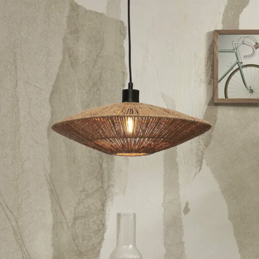 Suspension plate Iguazu avec abat-jour en jute fabriqué à la mainLa suspension Iguazu est un complément idéal pour le salon ainsi que pour la chambre à coucher ou la salle à manger. L'abat-jour est en jute et apporte ainsi une ambiance naturelle et chaleureuse dans la pièce. Chaque lampe à suspendre est fabriquée à la main et donc unique. L'amour du détail et le soin apporté à la fabrication font de cette lampe suspendue un diffuseur de lumière particulier qui contribue en outre au développement durable. À propos de Good & Mojo:- marque durable et sociale- une grande partie de l'éclairage est fabriquée à la main par des artisans dans de petites communautés au Vietnam- matériaux durables issus de plantes abondantes en Asie du Sud-Est- pour chaque lampe vendue, la WakaWaka Foundation reçoit un don, et un arbre est également planté par le biais de l'Eden Reforestation Projects