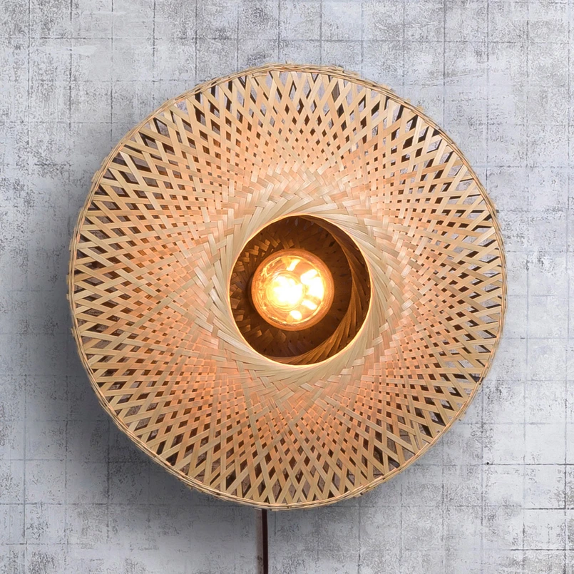 Applique murale ronde Kalimantan avec câble et interrupteur Cette applique murale ronde est un élément d'éclairage unique, fabriqué à partir de matériaux naturels qui conservent une coloration tout aussi naturelle. Kalimantan enthousiasme avec son abat-jour tressé en bambou flexible et stable, considéré comme un matériau durable. La plante peut toujours être coupée et repousse très rapidement, elle produit en outre beaucoup d'oxygène et enthousiasme par sa texture. Toutes les entretoises du motif convergent vers le centre du luminaire rond, où un évidement circulaire est aménagé. L'ampoule à insérer se trouve dans cette cavité, elle est entièrement visible et diffuse directement la lumière. Elle s'échappe en outre dans le corps du luminaire, où elle rayonne ensuite à travers les interstices et dessine une image lumineuse unique dans la pièce. Kalimantan est raccordé à l'aide d'un câble à fiche sur lequel est également intégré un interrupteur pour une utilisation sans effort. Good & Mojo est une marque de l'entreprise néerlandaise It's about Romi, qui a commencé à travailler avec des matériaux durables en 2010. Ce projet a donné naissance à sa propre marque durable, Good & Mojo, qui a été lancée en 2016. L'entreprise s'engage également dans des projets sociaux et fait la promotion du fait que pour chaque produit vendu, un arbre est planté.